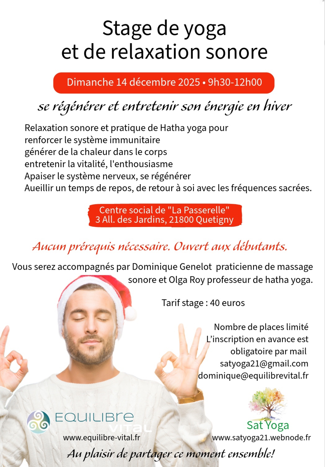 Dimanche 14 décembre Stage de yoga et de méditation sonore "Accueillir l'hiver" 9h30-12h00 La Passerelle, Quetigny