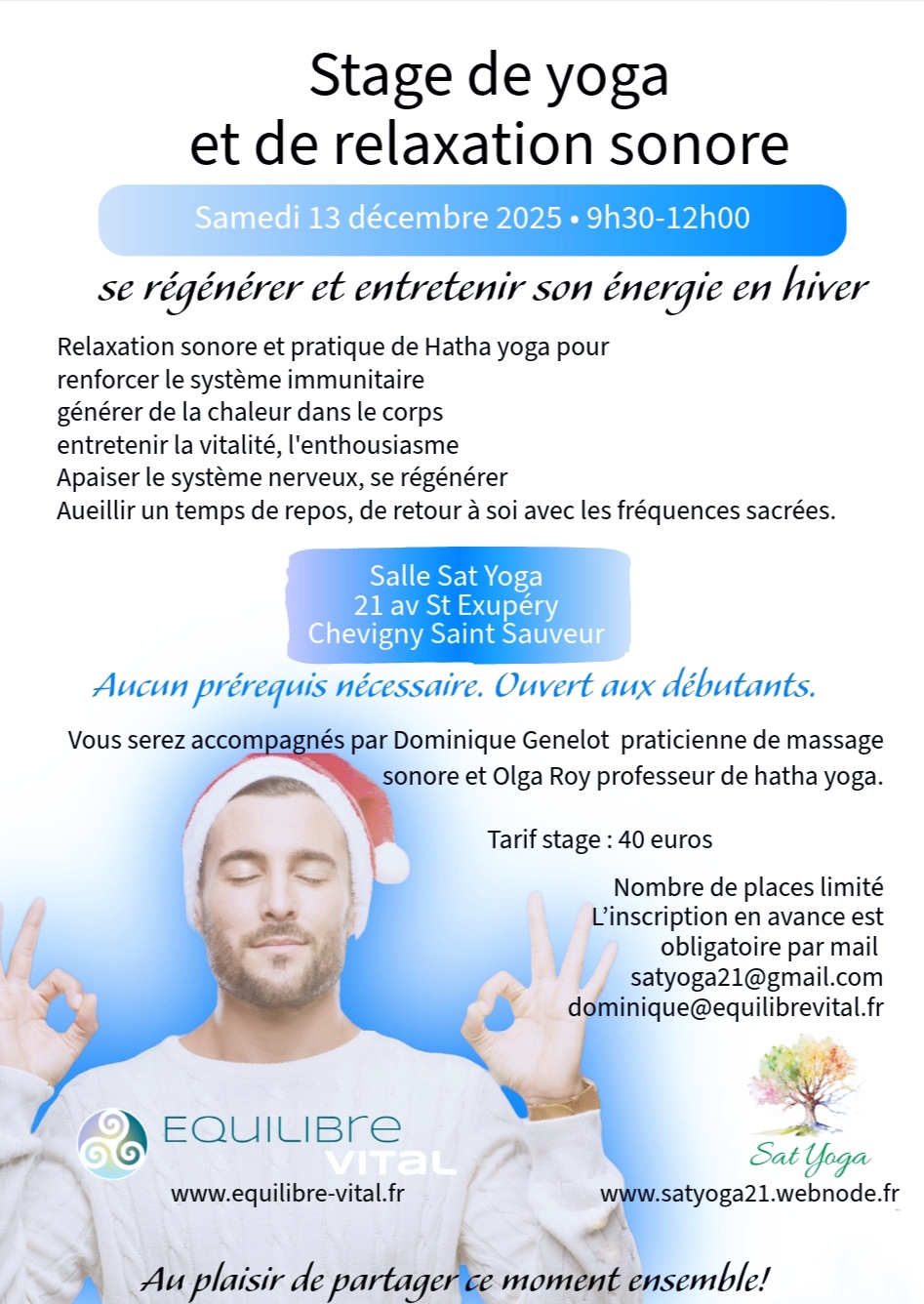Samedi 13 décembre Stage de yoga et de méditation sonore "Accueillir l'hiver" 9h30-12h00 Salle Sat Yoga, Chevigny St Sauveur