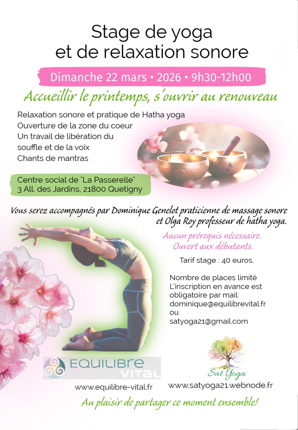 Dimanche 22 mars Stage de yoga et de méditation sonore "Accueillir le printemps" 9h30-12h00 La Passerelle, Quetigny